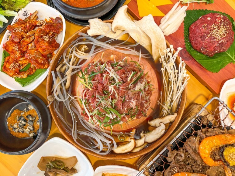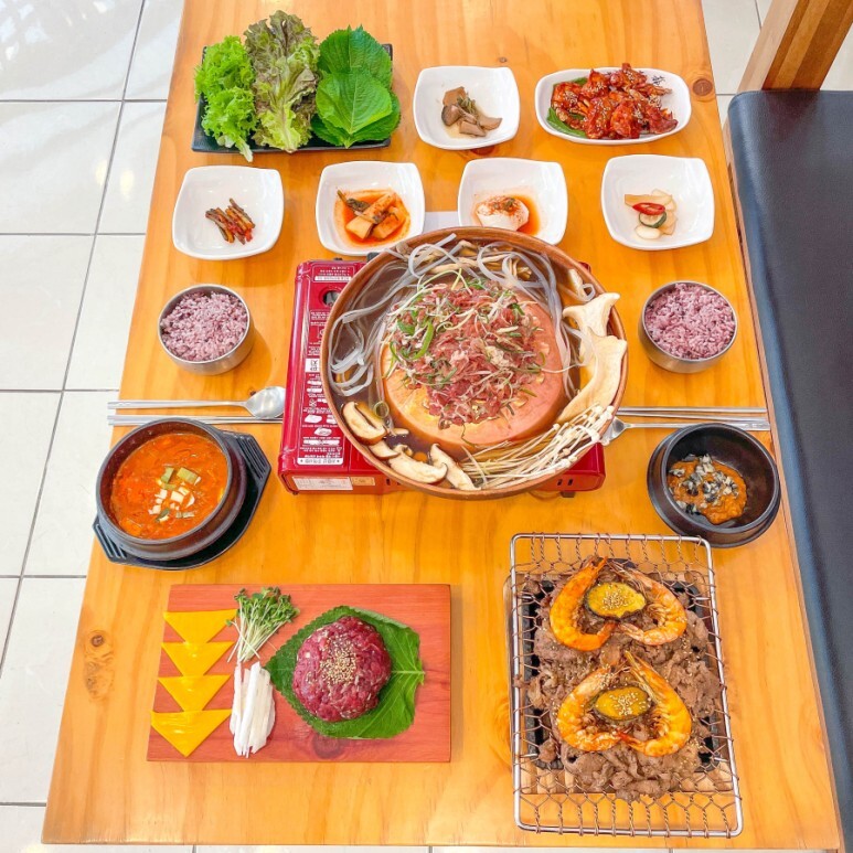 좌식테이블에는 8인가능하고 , 입식테이블에서는 34인도 가은하면서 아기의자 2개 구비가 되어 있고, 소불고기 주문시에는 홀에서 직원들이 직접 구워서 제공을 드리고, 식사와 술자리때 매우 편리하게 하는 것이 좋고, 추가반찬에은 셀프빠에서 먹고싶은만큼 가져다 먹을수가 있으며 헛개차가 기본물로 제공으로 하고,. 포장과 배달이 가능 합니다.