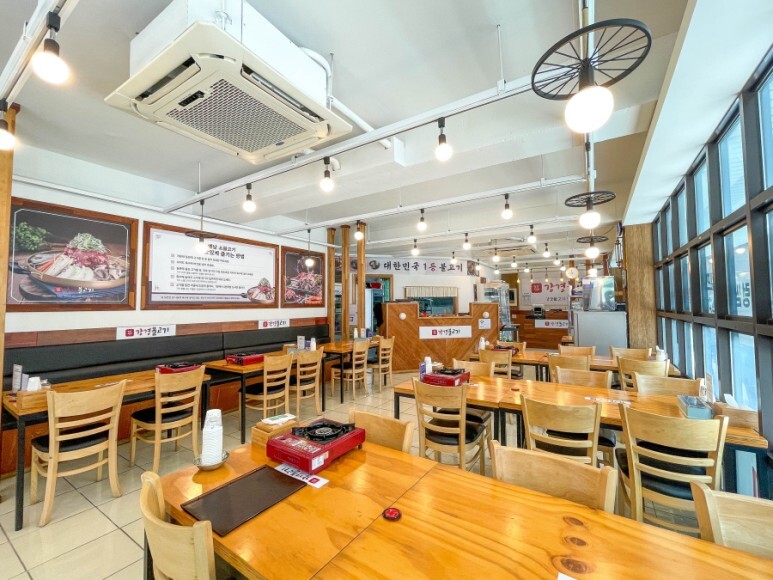 양산에서 부산대학병원에 있는 횡단보도 건너편 약국골목으로 가면 양산 부산대학 양산캠퍼스 앞에 있으며 황산공원 물놀이터 근처에 있고, 주차는 5대 가능하고, 양산에 없는 유일무이 불고기 전문점이라고 합니다.